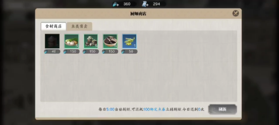 Nhấp vào các thành phần đã được mở khóa để tiêu thụ một lượng vảy tinh vi nhất định, có thể nhận được bằng cách trao đổi cá cụ thể. Kho nguyên liệu tự động được làm mới lúc 5:00 hàng ngày, và nó cũng có thể được làm mới mỗi ngày một lần bằng cách tiêu thụ điểm ràng buộc.